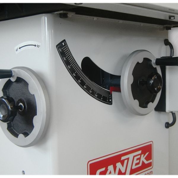 12” 5HP tilting arbor table saw with t-square rip fence. The Cantek TA12 12″ Table Saw is for serious woodworkers and production shops that require an industrial strength and powerful table saw. The large precision-ground & polished cast-iron table and cast-iron saw unit ensure vibration free cutting with optimum cut quality. The quick setting T-square rip fence is equipped with dual inch & metric scales for precise rip cutting. The blade guard is mounted to a splitter with anti-kickback pawls for safe operation. Comes standard with both standard and dado arbors and table inserts. Driven by a powerful 5HP motor it can make the cuts you need effortlessly.