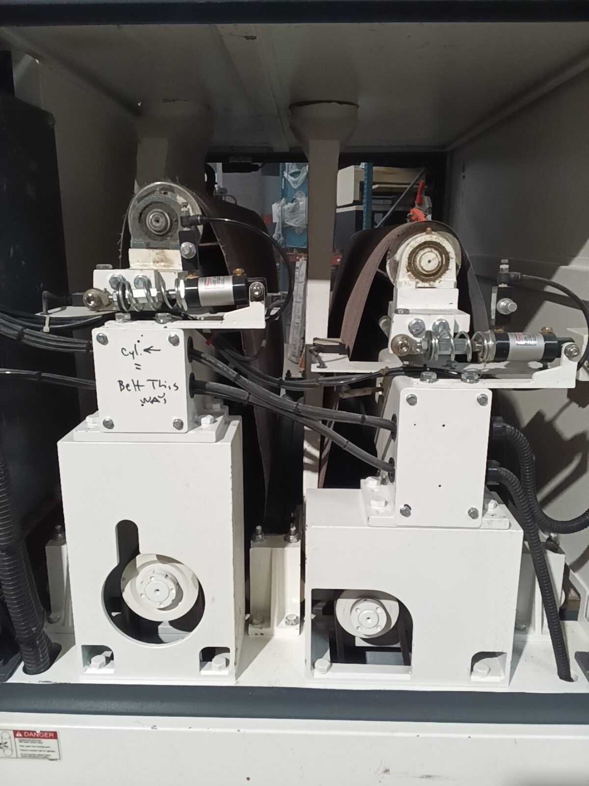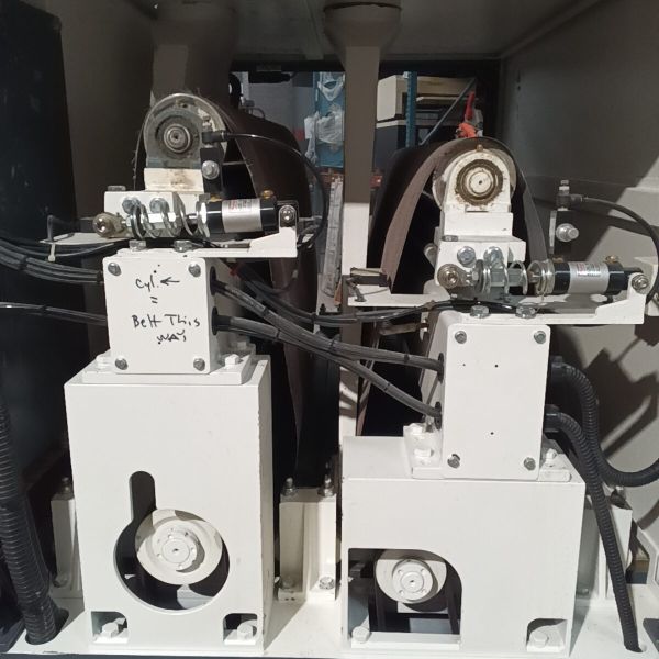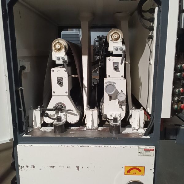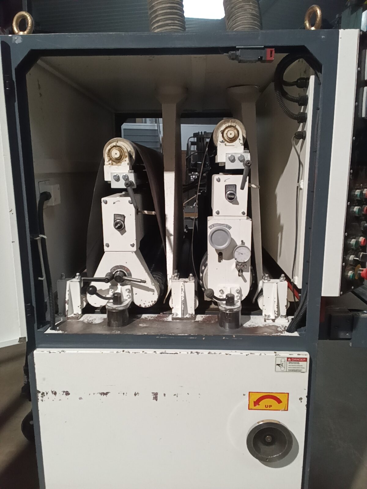 This is a two head 43-in wide machine with the first head being a spiral grooved rubber drum the second head is a combination head with a platen. This machine is currently being updated with a new feed belt and new bearings on all the high speed rollers. The first spiral grooved drum is going to be resurfaced. It is for sale now but it will be approximately mid-February before it is available.