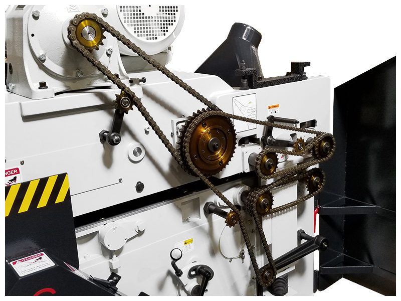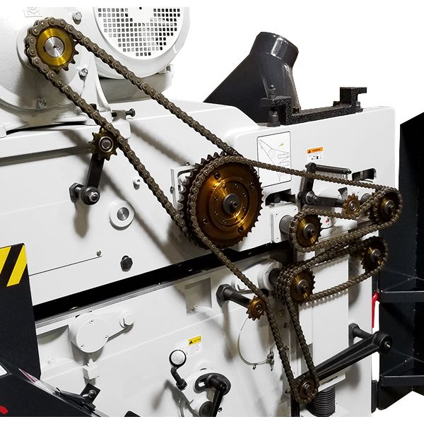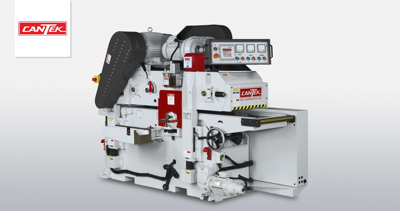The Cantek GT400BRD 16″ Double Surface Planer has a robust cast-iron body for industrial planing day in and day out. The spiral insert knife cutterheads produce a smooth planed finish with maximum stock removal. The material is passed over the bottom head with a spring-loaded pin feed system while the infeed bed is adjustable to determine how much material is removed. The final thickness is keyed in the digital control and the top head & feed assembly automatically move in place.