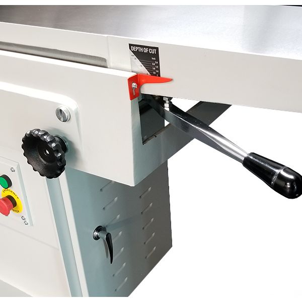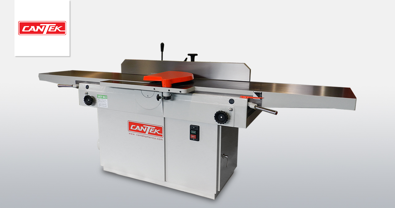 The Cantek J168LH Heavy Duty 16” Jointer is a truly industrial long bed jointer capable of producing perfectly jointed material used in the production of wood furniture, doors, face frames. and more.  The heavy-duty cast iron infeed & outfeed table and back fence provide superior vibration damping which results in an optimum jointed finish.  The spiral insert cutterhead with its two-sided solid carbide inserts provides optimum stock removal with a superior finish.  The insert knife cutterhead in its spiral pattern runs extremely quiet and the knives have an extremely long life.  The parallelogram table adjustment ensures a minimal gap between the cutterhead resulting in the best quality of cut.