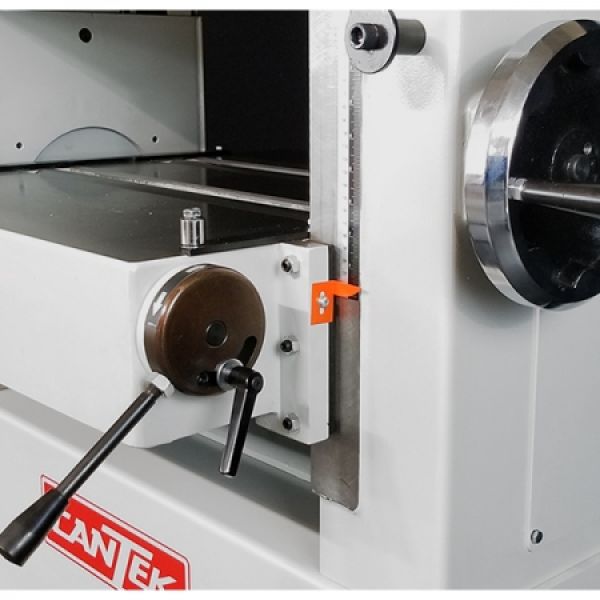 Light industrial 20” spiral insert knife cutterehead thickness planer for the serious craftsperson. The Cantek P20HV 20” Planer has a cast iron table and head assembly with robust welded steel frame results in superior planing finish due to greatly reduced vibration. The spiral insert knife cutterhead runs extremely quiet and the solid carbide inserts provide a smooth finish and have a long life. When one edge gets dull simply rotate the knife 90 degrees for a new cutting edge. Knives can be rotated four times before needing to be replaced.