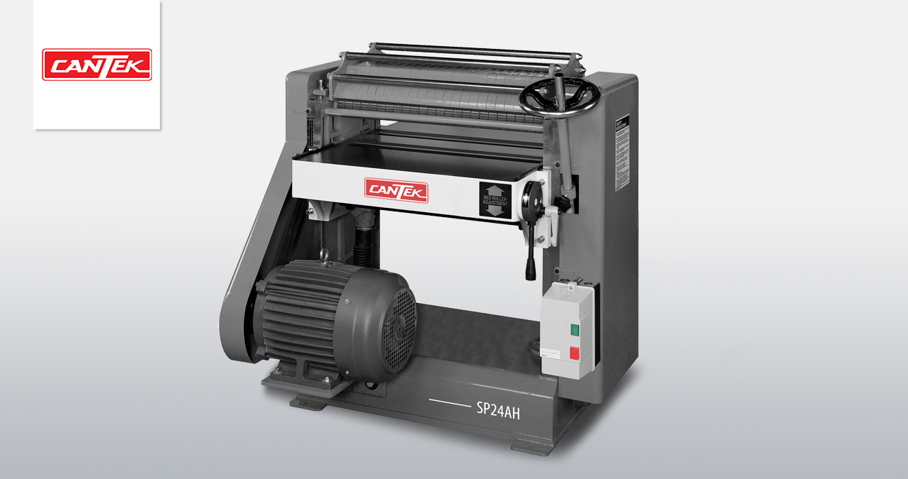 The Cantek SP24AH 24” Planer is an entry-level planer that provides a cost-effective solution for many of your planing needs without sacrificing quality. It comes equipped with many important features that are typically found in higher priced solutions. These features include a sectional infeed roller, sectional chipbreaker and a spiral insert knife cutterhead! The spiral insert knife cutterhead produces a smooth cutting surface, requiring less power than a traditional straight knife head. The spiral head is quieter and the solid carbide inserts have a longer life expectancy and easily replaceable. The SP24AH is a popular choice for small to medium-sized furniture and cabinet manufacturers looking for a robust, simple, and affordable planing solution.