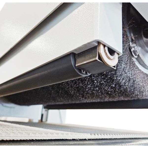 Equipped with an outboard bearing which supports the brushing spindle, greatly reducing vibration.Rubber Hold Down Rollers