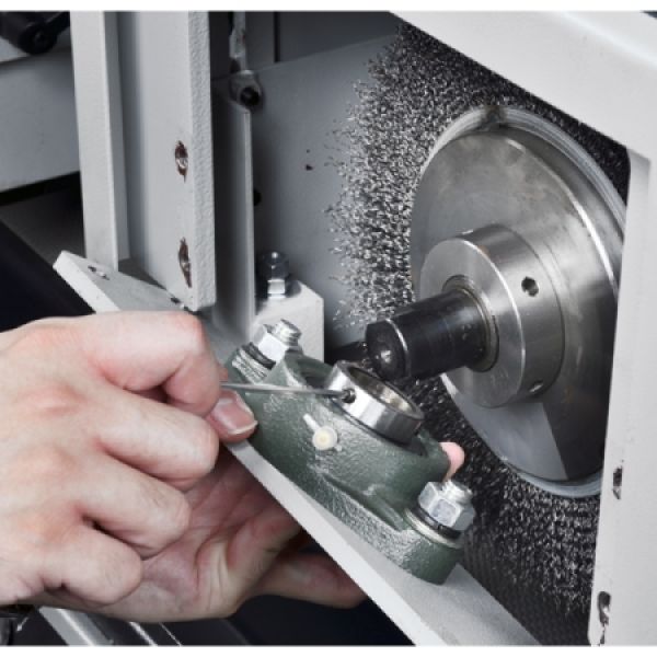 Ergonomically located machine controls for operator convenience. Controls include: variable feed speed & RPM controls, individual motor on/off switches, emergency stop, up/down buttons, and forward reverse switch. The digital control displays the material thickness setting, brush RPM, and brush head amp draw for load monitoring.Powerful 10HP Motors
