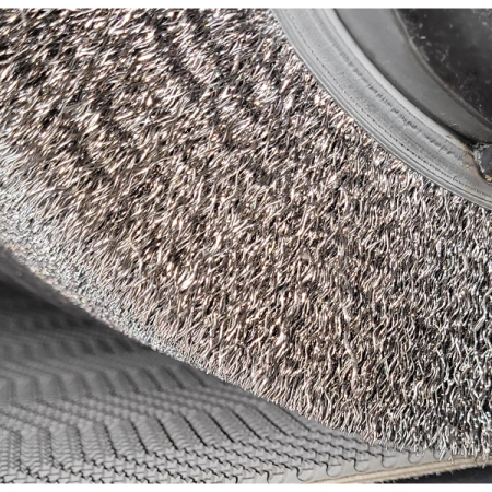 Powerful 10HP brushing motors are controlled by individual VFD inverter controls and reversing switches to allow operator for full control over brushing operations to achieve the desired results.1st Head: Wire Brush Head – Medium Structuring