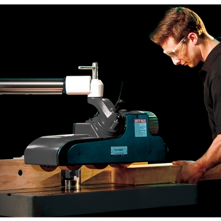Consistent, safe, and powerful power feeder with the right speed for your job. The Cantek DC30 3-Roll Variable Speed Power Feeder is a safe and powerful feeding unit for shapers, table saws, and more. The rubber feed wheels grip the workpiece firmly and feed it at a constant speed to produce flawlessly finished pieces. The DC brushless servo motor with electronic variable speed adjustment allows the operator full control for setting the optimum feed speed according to the specific job. The universal stand allows for quick positional adjustment from a horizontal to vertical positioning and everything in between.