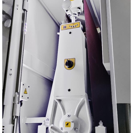 Compact Metal Wide Belt Sander for increased efficiency during oxidation and slag removal. The Cantek MT37D 36” Single Head Metal Widebelt Sander is designed to be easy to use and durable for the removal of oxidation, deburring, and slag. It comes equipped with a single rubber contact drum with efficient material removal capabilities. The 7” contact drum is equipped with pneumatic belt tensioning for fast belt changeovers. The precision digital thickness control allows the operator to accurately enter the desired thickness which moves the table precisely in to position for repeatable results. The industrial welded steel frame and powerful features all come in a compact package making ideal for smaller to midsized shops.