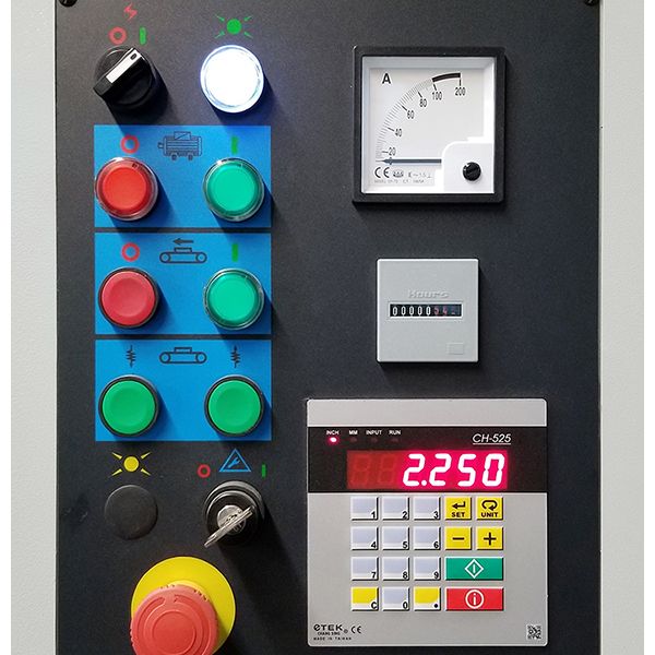 - Double infeed and outfeed pressure rolls for superior part hold down