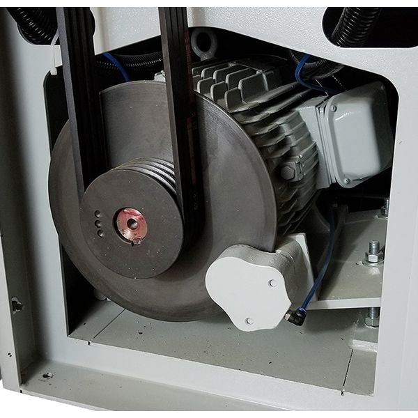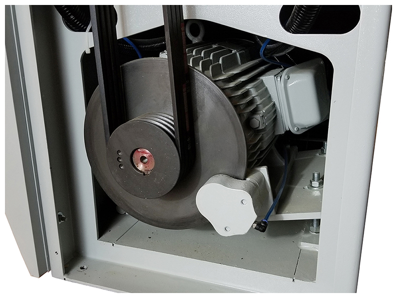 - Pneumatic belt tensioning with quick release outboard support to facilitate fast belt changes.