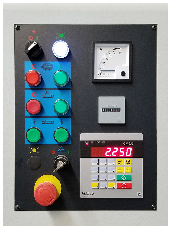 - Ammeter for load monitoring to ensure the proper amount of material is being removed according to the selected grit.