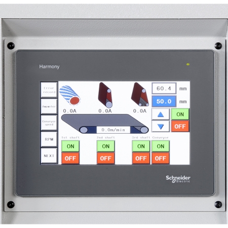 Increase efficiency by planing & sanding in a single pass. The Cantek SR1100NDA 42” Planer Sander is designed to greatly increase your efficiency when planing and sanding solid wood components. The spiral insert cutterhead produces a fine finish and requires less horsepower than traditional straight knives. When a cutting edge becomes dull, you simply slide the head assembly out of the machine and rotate the knives to a fresh edge. The SRN series features an extra heavy-duty frame, industrial cast-iron pressure shoes, and cast-iron sanding head assemblies, which allow the SRN series to excel in high-production environments and demanding widebelt sanding applications. The SRN series is available with 1-4 sanding units and in widths of 24”, 36”, 42”, 52” and 63”. Sanding units can be rubber-covered contact drums, or combination sanding units (drum/platen) to suit production needs. It is also equipped with a user-friendly touch screen control for added convenience in adjusting the feed speed, thickness setting, and more. Special emphasis has been made to the safe operation of this sander with emergency devices on the infeed, outfeed, conveyor table, and access doors.