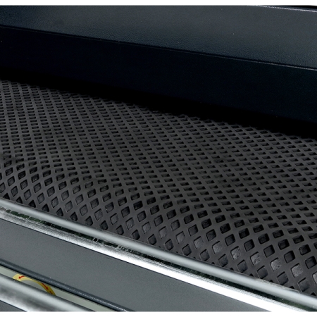 Disc brakes on the main motors allow for faster belt changes and improved safety.