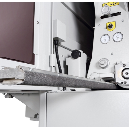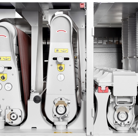 Clear plastic windows allow the operator visual access to the sanding heads to ensure proper oscillation and observation of the sanding belts without having to open and shut down the machine.