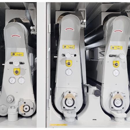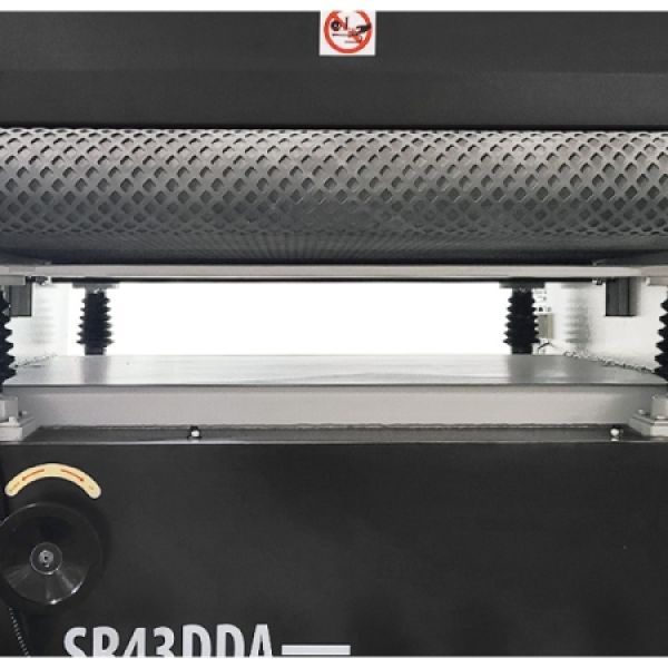 The Cantek SR52DDA 52″ three head widebelt sander combines a solid machine frame with unparalleled machine features resulting in superior sanding quality and reliability. The three sanding heads result in fewer passes through the sander resulting in increased efficiency and throughput. The first sanding head is a robust steel contact drum with calibration capacities and durability. The second head consists of a versatile rubber contact drum. The third head is a combination head with a rubber contact drum and adjustable sanding platen to perform further calibration or finish sanding with finer sanding grits. The 75″ long belts allow for longer runs between belt changes. The quick setting digital thickness control allows for accurate, automatic table adjustment for precise sanding results.