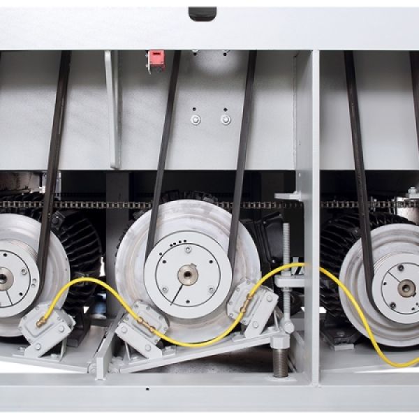 Automatic disc brakes for the sanding heads allow for fast belt changeover.