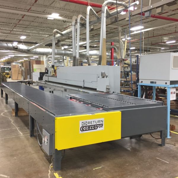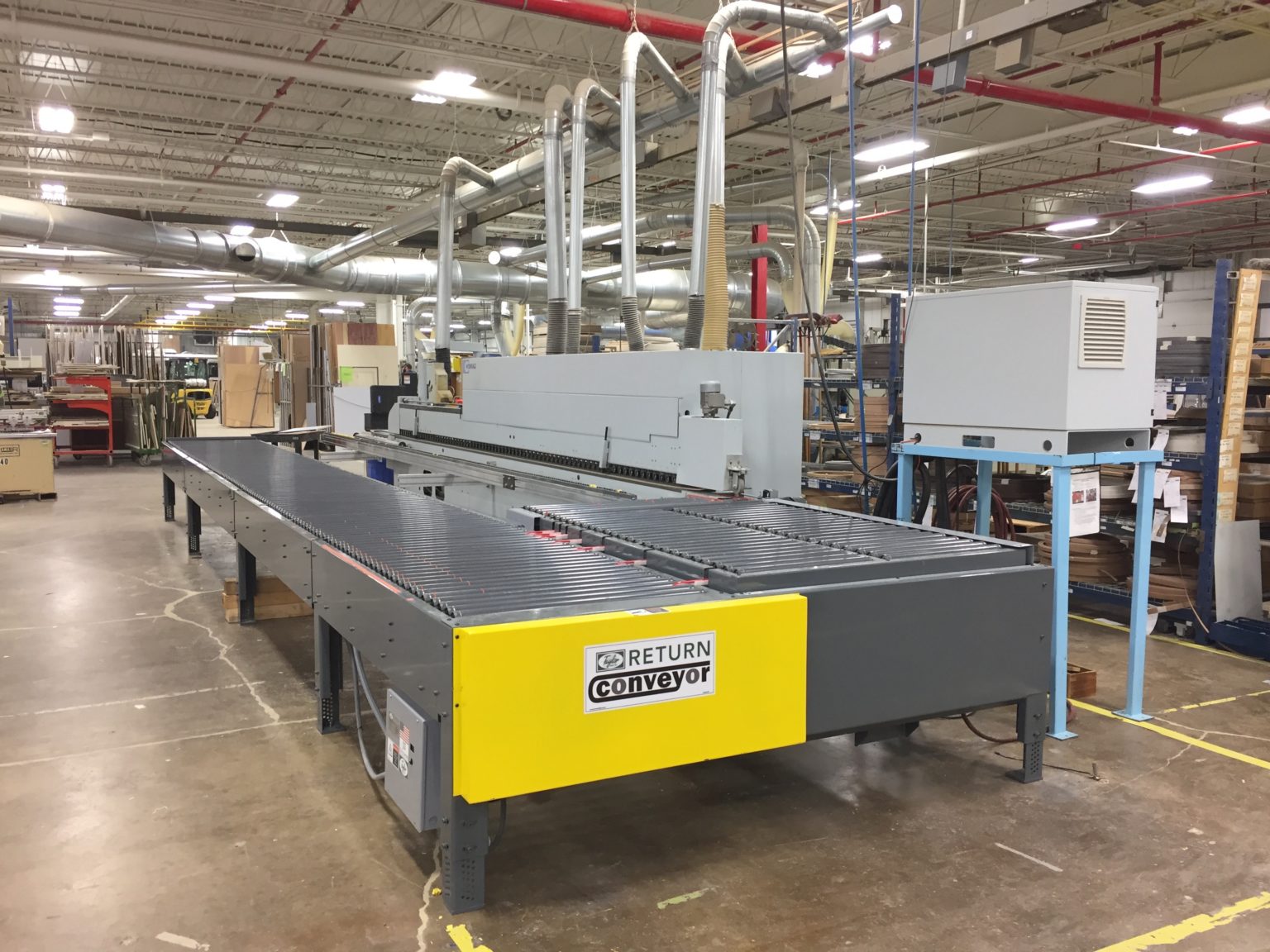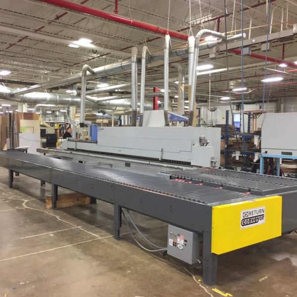 The edge bander model comes in multiple widths and lengths. The outfeed return can be customized to return components to any location near the edge bander infeed. Numerous options are available for special applications.