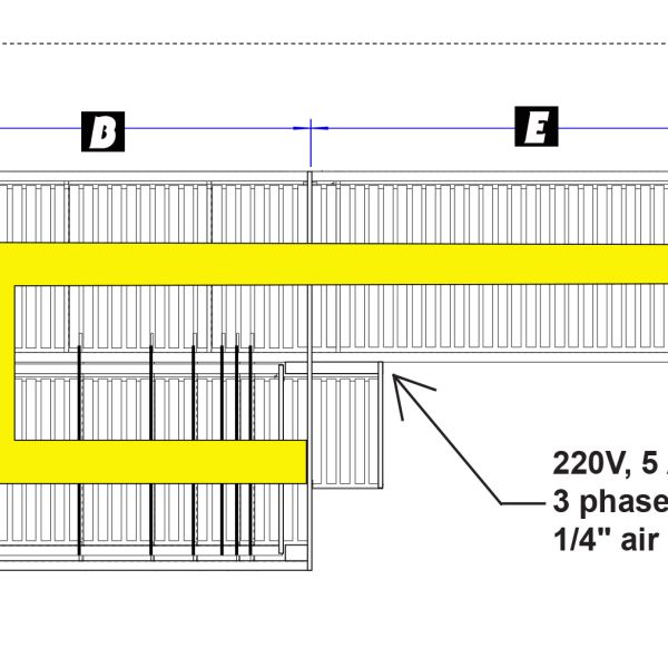 - Any Length Return (in one foot increments, measured from tail end of shaper/sander) composed of modular sections.