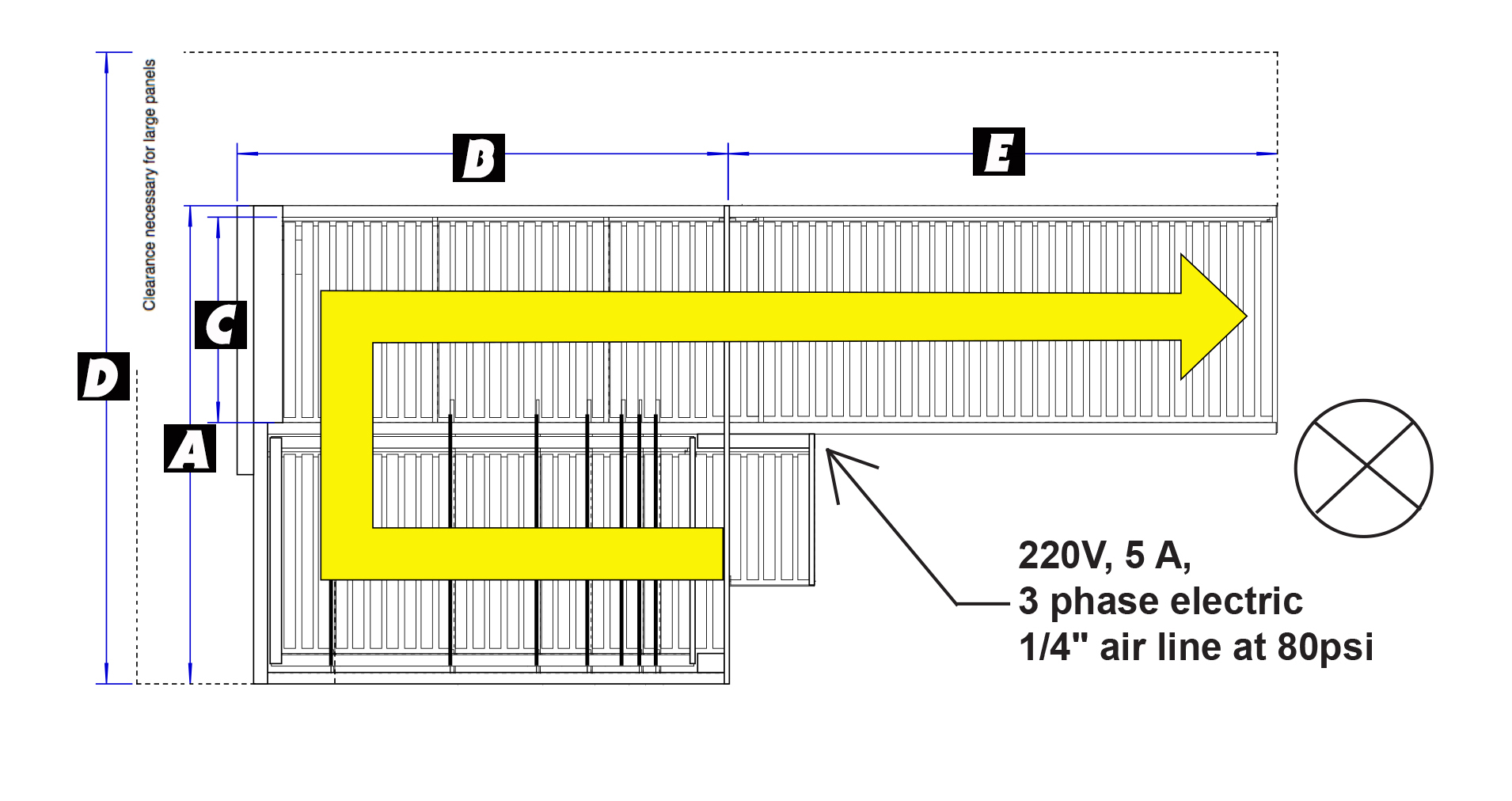 - (4) machine lengths return material up to 60″, 96″, 112″ long, or 132″ Long