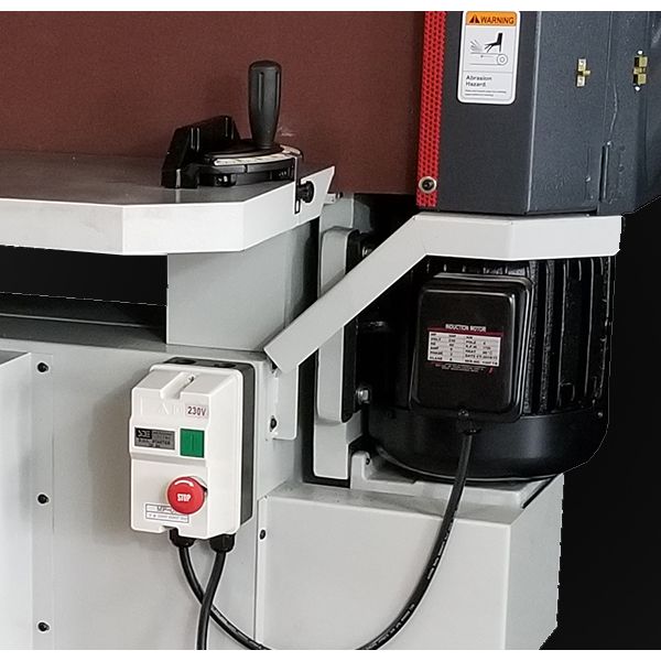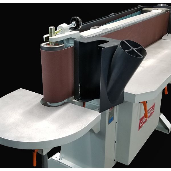 The Cantek PW120E Oscillating Edge Sander is designed for the most demanding sanding applications. With its powerful 3HP motor it can perform under industrial requirements. The oscillating belt ensures optimum sanding quality and extended belt life. Its versatility lies in the number of functions which can be done on this single machine. The industrial cast aluminum table can be easily tilted with positive stops of 45° and -5° so you can easily sand straight or miter edges. Additionally, the front table is spring loaded making it effortless for the operator to set the table height in order to utilize the full sanding belt. The 9” high sanding belt makes it ideal for sanding thicker furniture parts or drawer boxes. The additional tiltable cast aluminum end table with removable guard allows for inside contour sanding.