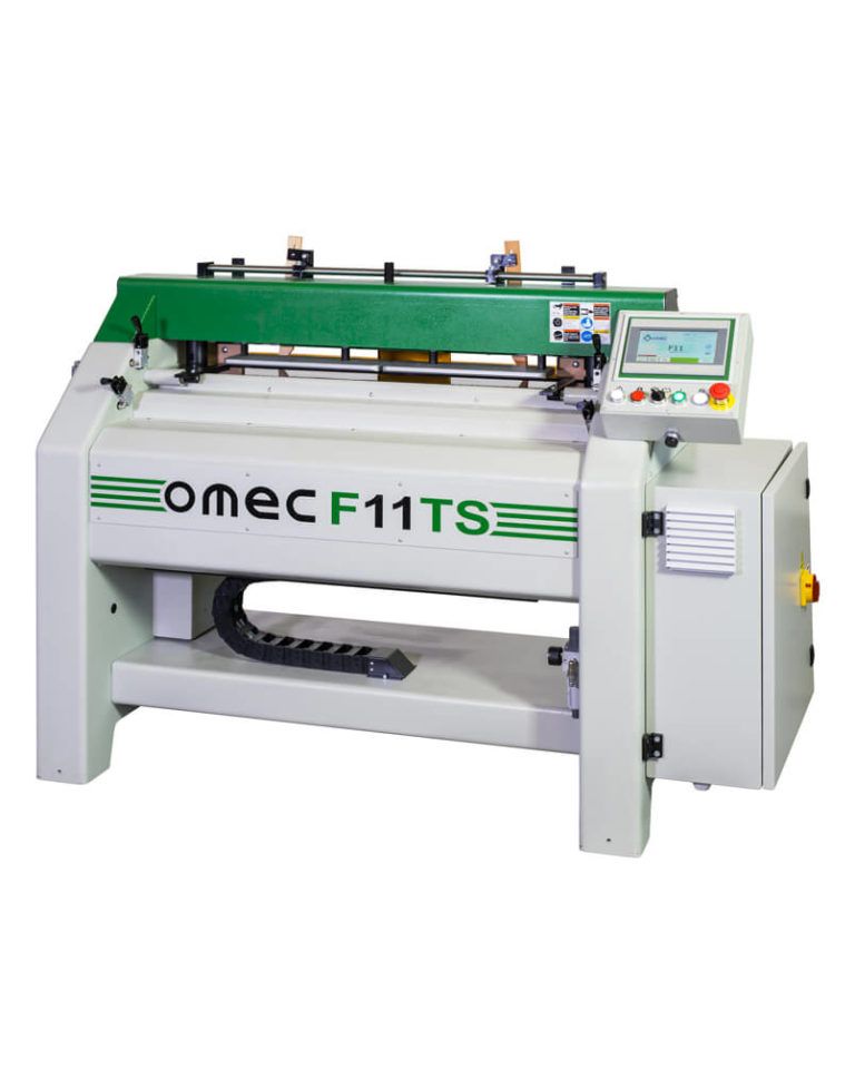 This versatile automatic dovetailer evolved from Omec’s original F11CN. With a machining area of approximately 30”, the F11TS can produce most any design and size dovetail product desired. The F11TS, with spindle speeds of 18,500 rpm, can accommodate a variety of tooling to produce the dovetail effect desired by operator including box cuts, French dovetails, alternating pitch, etc. Control of spindle location, machining speed, tooling variance, height of pin, depth of joint, location of joint, and number of joints are all controlled by CNC. The F11TS model utilizes 7″ inch touch screen /600 programs for easier and faster operator inputs and a better visual representation of the machine operation. Additional modifications include the positioning servo now equipped with an absolute encoder eliminating X and Y axis limit switches. This makes the Omec F11TS even faster and more precise than previous models. The Omec F11 machines are well proven and have been imported by Macoser in the U.S. since the late 90’s