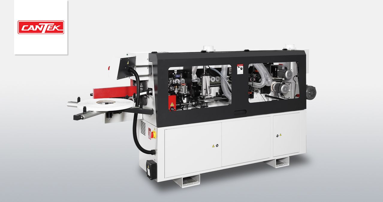 The Cantek MX340 Automatic Edgebander is a compact edgebander capable of applying up to 3mm thick edge tape on cabinet parts and more.  It comes equipped with high frequency motors on both the end trim and top & bottom trim.  In addition it is equipped with PVC radius scraping and buffing units.  It’s compact design and affordable price point make it the ideal edge banding solution for the small cabinet shop who does not require pre-milling.