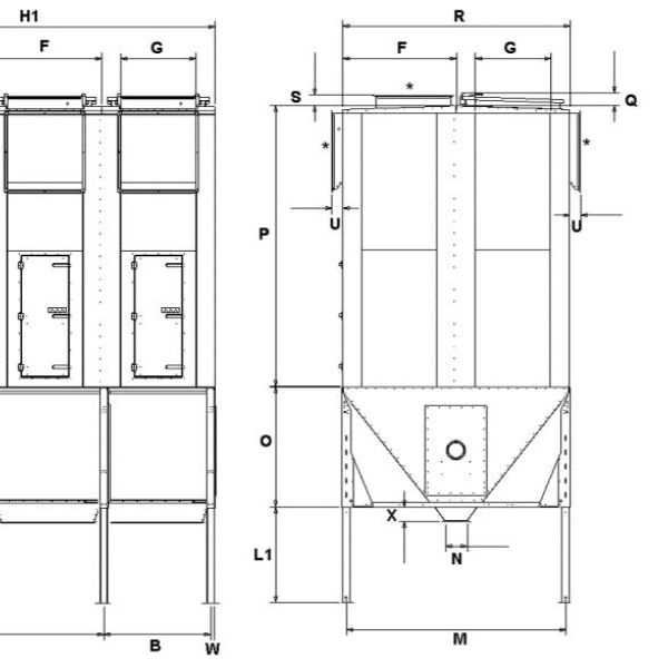 Nederman’s Baghouse dust collector with rotary valve or screw conveyor.