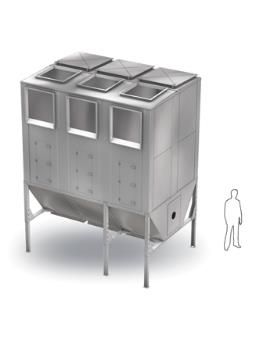 A baghouse dust collector designed for medium air volumes and can handle large volumes of material concentrations.