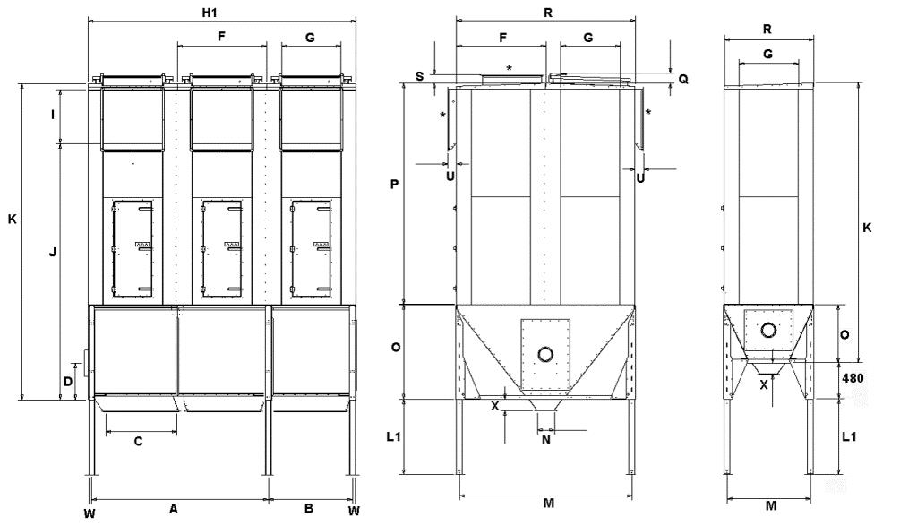 The NFSZ3000 baghouse dust collector is designed for medium air volumes and can handle large material concentrations. It is a modular dust collector made of galvanised steel sheet with a telescopic support, suitable for outdoor use.Available in two different widths, type E 1200 mm (47″) and type J 2400 mm(94″). Each module of the filter design is fitted with a combined inspection and explosion relief door. Filter cleaning with regeneration fans. The filter is fitted with the unique patented SUPERBAG.