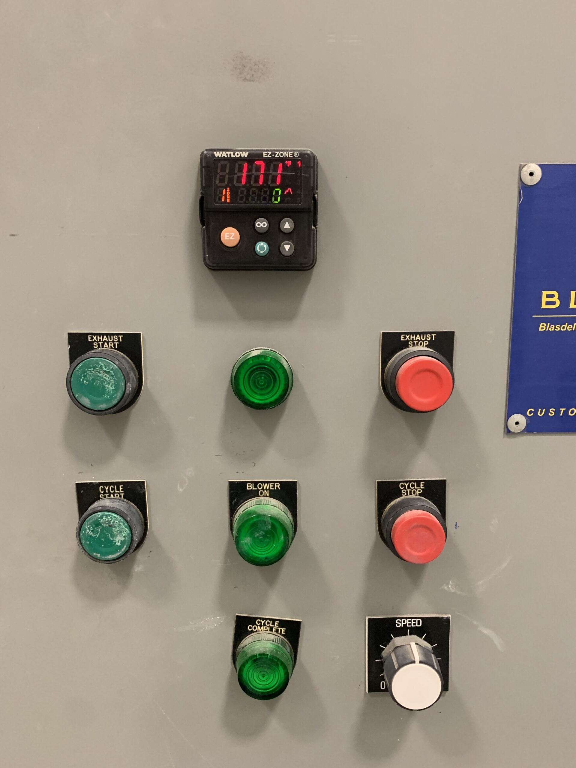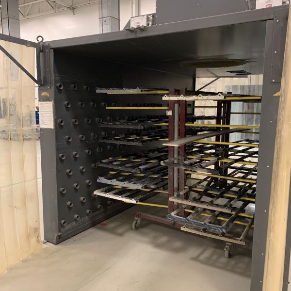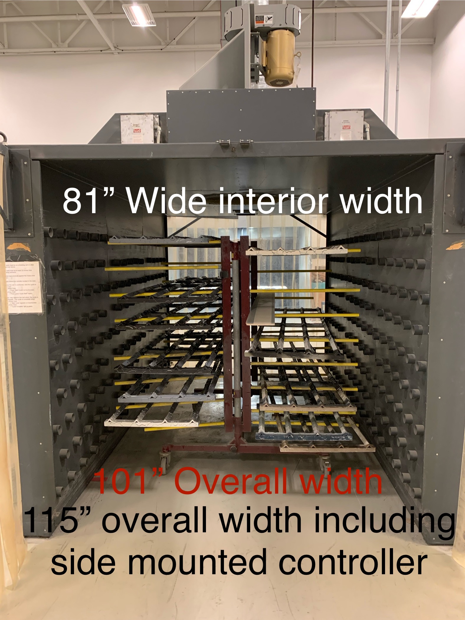 This oven is in great shape & ready to go to work for you. The main fan is on a variable speed to be better control the air flow across your product that is curing.