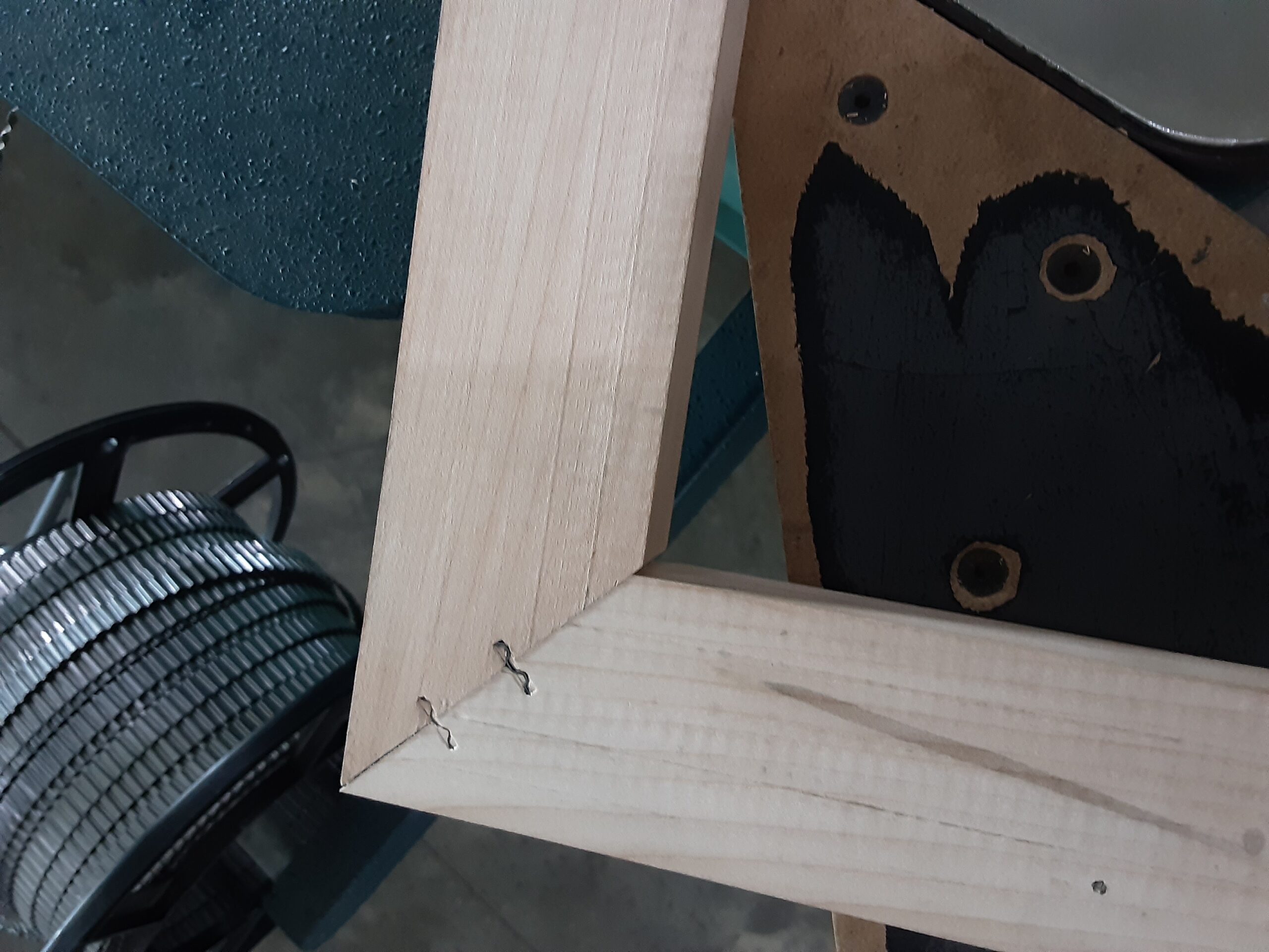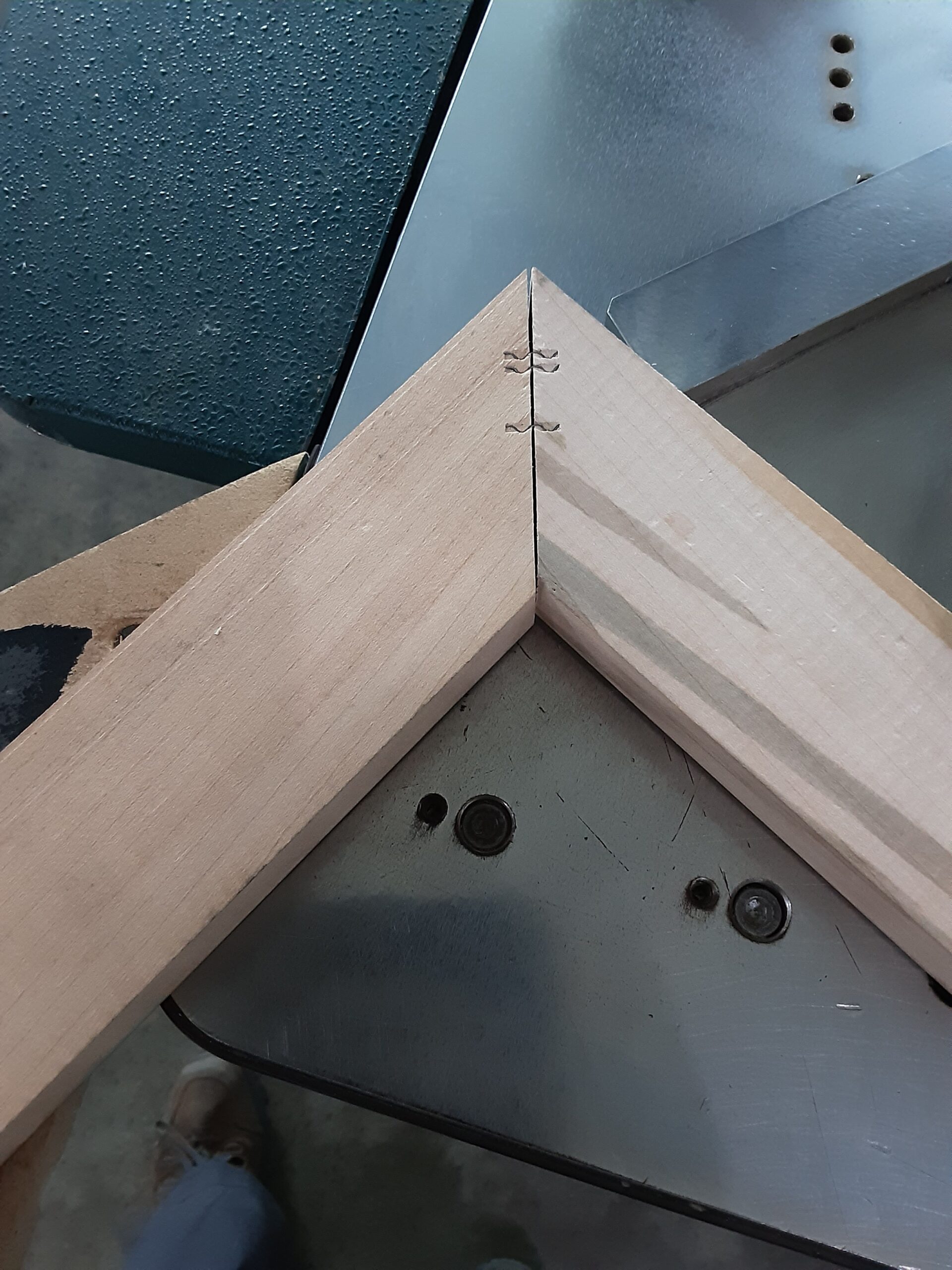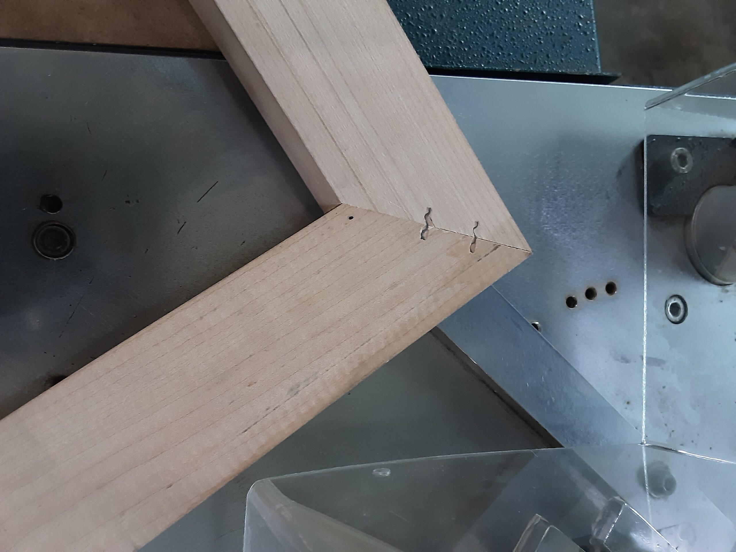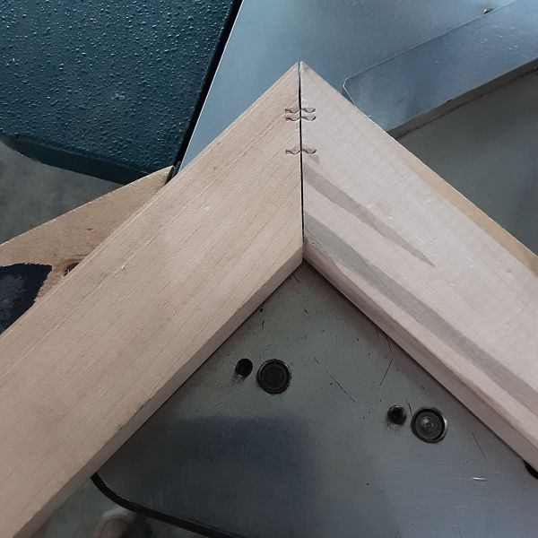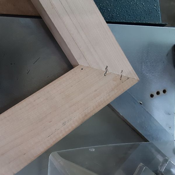 Pins are fired in (10) preset locations via programed placement, multiple fires at each location allow for up to (4) stacked pins. Unit can be operated in the horizontal position for large frames, or on a vertical slant for smaller frames. Machine uses rigid steel staples to join mitered edges for tight, strong joints.