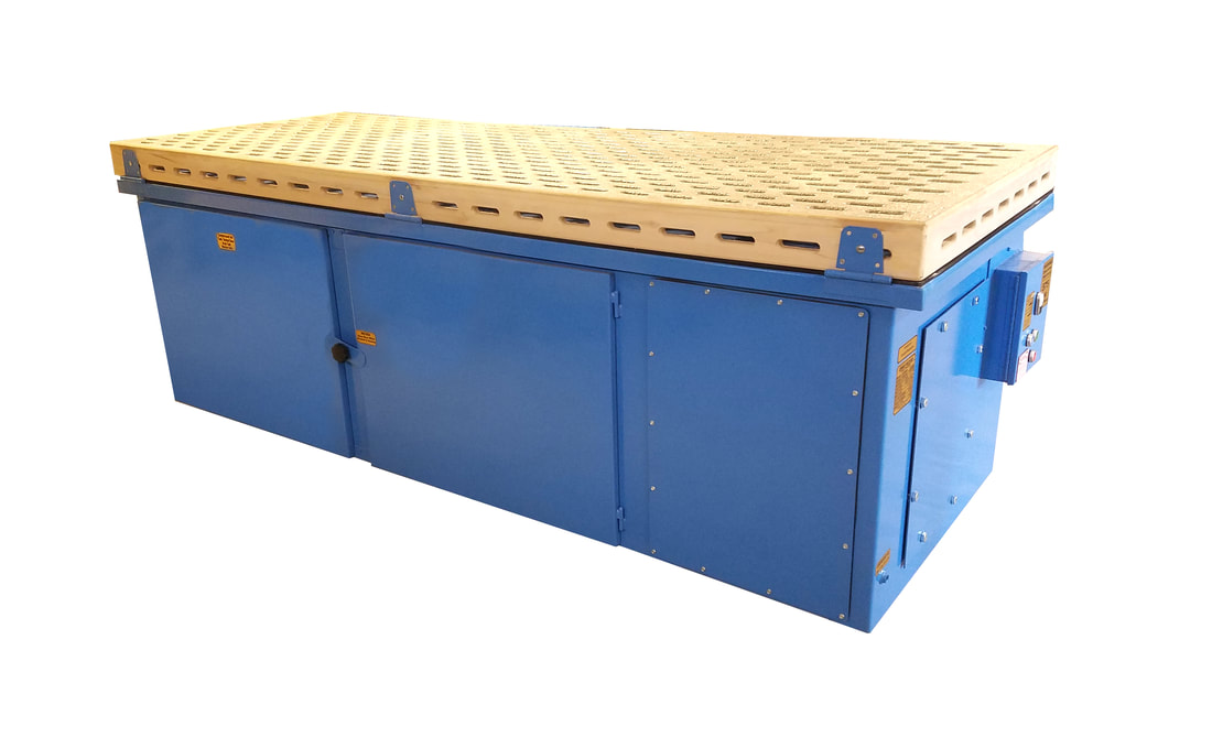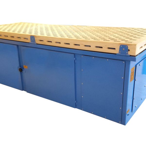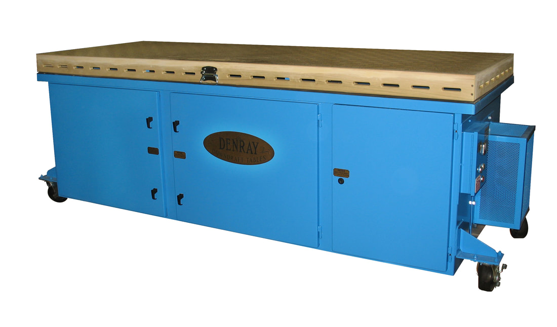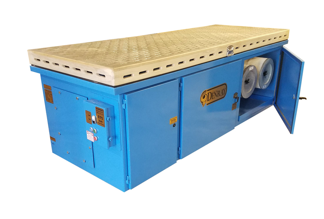 This model is ideal for medium and large sized jobs and is accommodating for two or three jobs going on at the same time on the same table. The 3696B is one of the larger tables in Denray’s push-button cleaning line. This model comes standard with 80/20 cartridge filters which clean with a 99.95% capture rate at .5 micron, along with a magnetic starter and rubber coated top. *Please note that the starter box on this model is on the left side of the machine.