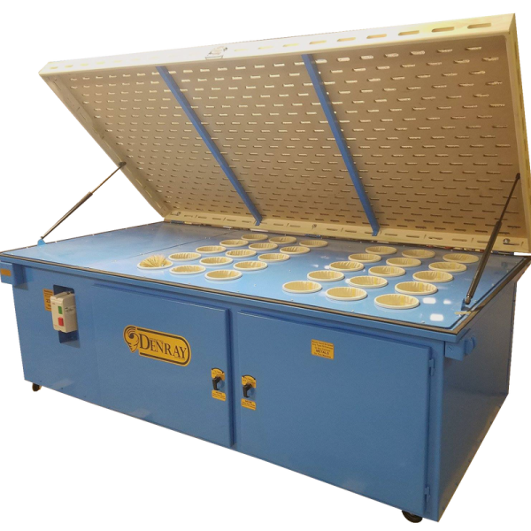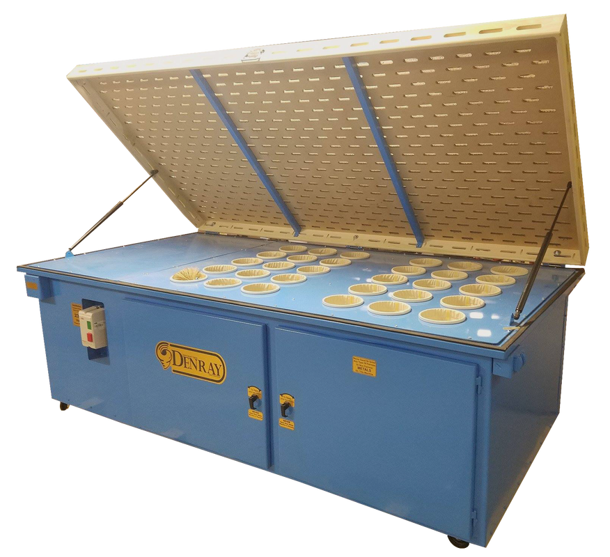 This model is ideal for larger jobs, as well as accommodating to two or three jobs going at the same time on the table. The 9600 is ideal for wood dust. This model comes equipped with tube filtration which cleans with a 99% capture rate at 1 micron, creating a much superior filtration system than any pleated filters. The 9600 comes standard with a filter cleaning brush/handle for manually cleaning the filters, casters and a rubber coated top.
