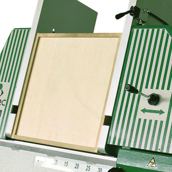 This drawer box clamp is unique in that the operator assembles the loose box parts in the clamp itself not prior to introducing to the clamp. Pneumatic cylinders lock in the drawer sides and spring guides the fronts and backs. A pneumatic vacuum holds the drawer bottom in place when the hydraulic cylinder compresses the box. Total time from loose parts to completed box is less than one minute.