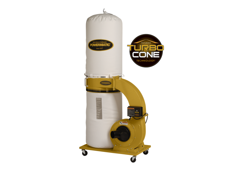 The PM1300TX Dust Collector features the exclusive TurboCone™ which improves chip separation to prevent clogging of the filter, and increases packing efficiency of the collector bag. The cloth filter bag is made of a 30 micron material which aids in the filtration of all but the finest dust particles, and the large capacity collection bag reduces the number of bag changes. A digital timer can be set for up to 99 minutes, and an infrared sensor allows remote control operation. The all-metal duct improves rigidity and air flow. Four swivel casters and conveniently located handles allow for easy mobility.