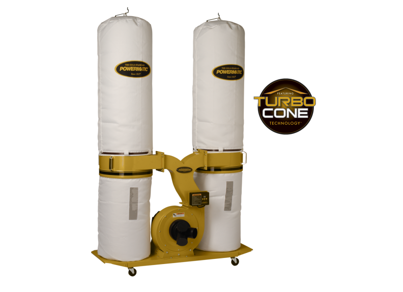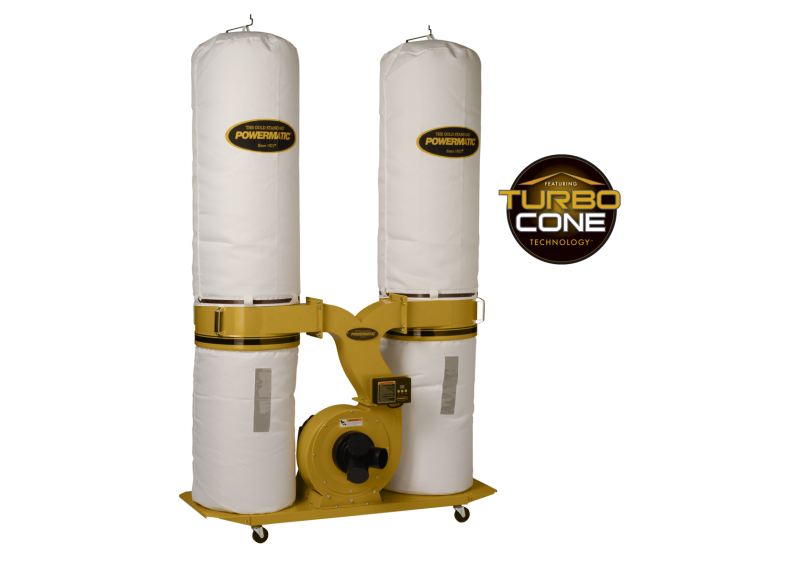 The PM1900 Dust Collector is strong enough to use with planers, wide belt sanders, table saws and most other woodworking machines. The exclusive TurboCone™ improves chip separation to prevent clogging of the filter, and increases packing efficiency of the collector bags. The canister filter offers superior filtering surface area over standard bags, and captures 98% of 2-micron particles. The all-metal duct improves rigidity and air flow. The clear collector bags are large capacity, which means less down-time changing them. Four swivel casters and conveniently located handles allow for easy mobility.