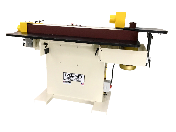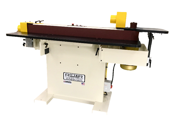 The RITTER 933 Double Sided Oscillating Edge Belt Sander is unique from the other Ritter 6″ x 132″ machines, in that the entire platen assembly raises and lowers to give the operator use of the entire belt surface. The R933 offers solid reliability with the durability you’d expect from a RITTER machine. Designed for use with edge finishing devices common to the furniture and custom woodworking industry. The ability to use the machine for a variety of edge finishing applications makes this the industry’s most universal edge belt sander. *Double Sided Ground Steel Platen