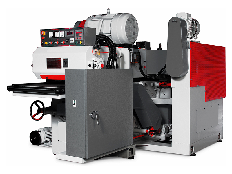 High speed production double surface planer for the most demanding planning applications. The Cantek GT-HD Series Extra Heavy Duty Double Surface Planers are suitable for the most demanding planing applications. The HD series are capable of high feed speeds with maximum stock removal capabilities. They feature a robust cast-iron body & industrial cardan drive system ensure high production planing day in and day out. The large diameter cutterheads are spiral type with two-sided solid carbide inserts which produce a clean finish with superior stock removal capacity. The spring loaded feed system passes the material over the bottom head allowing it to act like a jointer to flatten the board prior and then a sectional infeed roller feeds the material through the top head for accurate dimensioning.