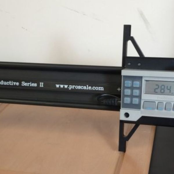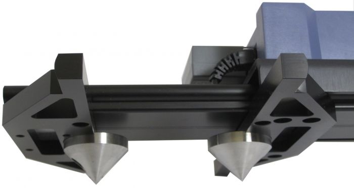 It is based on the ProScale Model 590, and is robust enough to span up to 120 inches of measuring range (longer if beam is supported). It has a sliding carriage/jaw assembly that rides on 4 iGlide™ friction bearings to minimize encoder pitch and yaw. Four removable alignment cylinders are included with the system for easy diagonal measurements. The optional Hole Measuring Kit (contains 2 full steel cones and 1 half cylinder) is available for edge-to-hole and hole-to-hole measurements. -