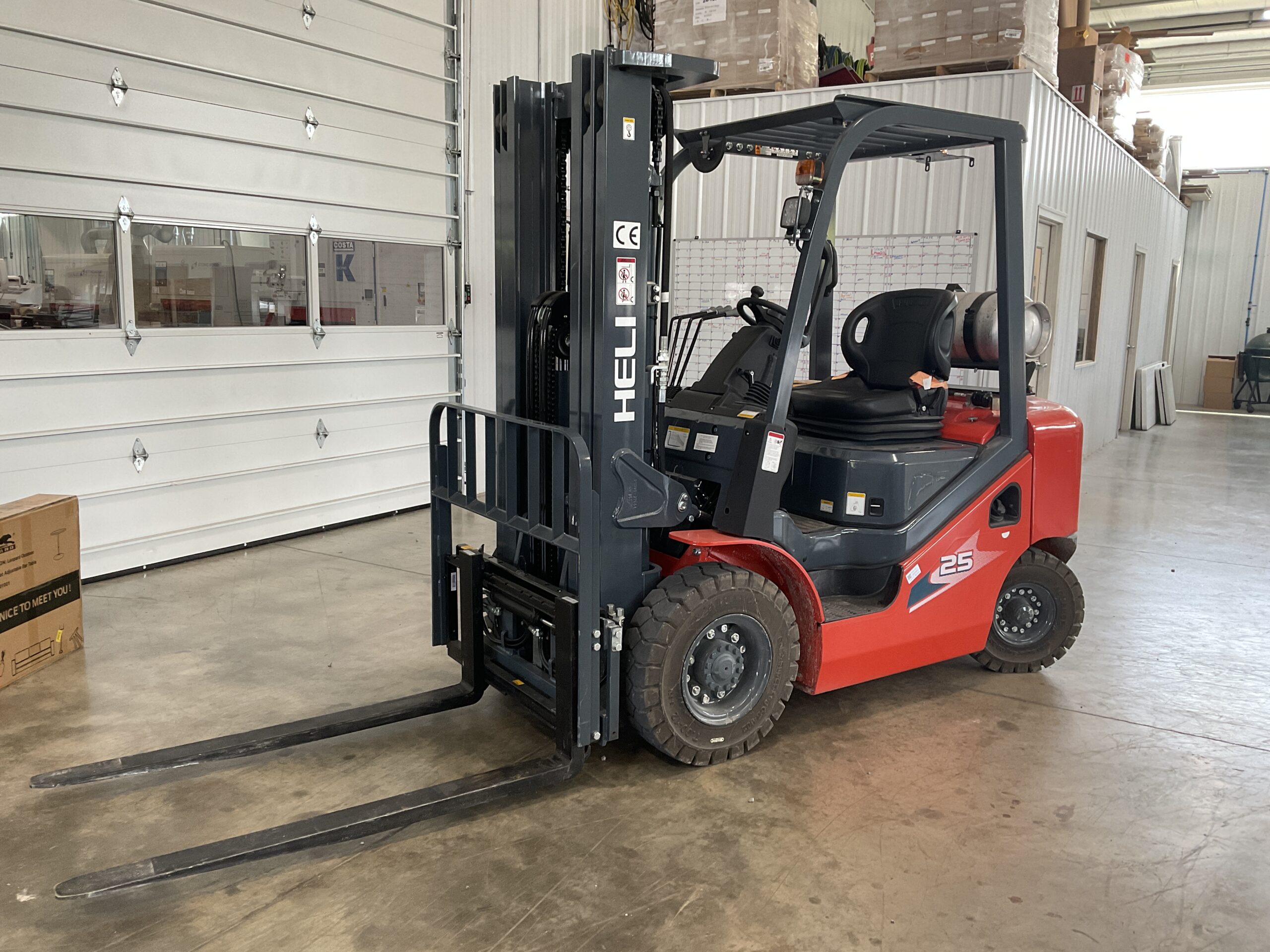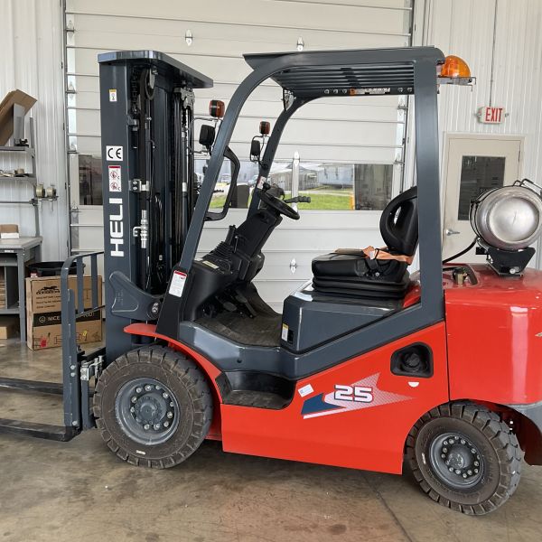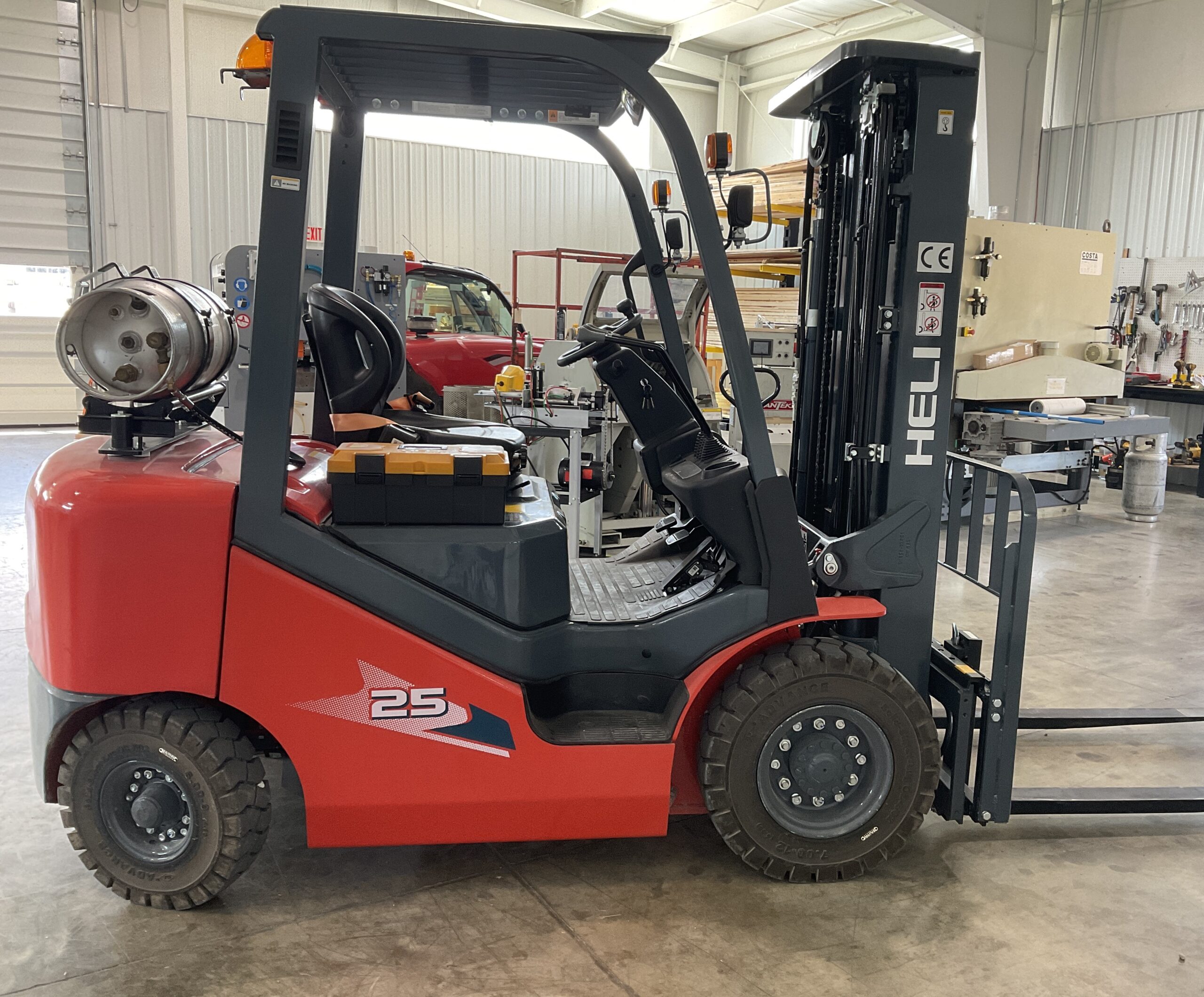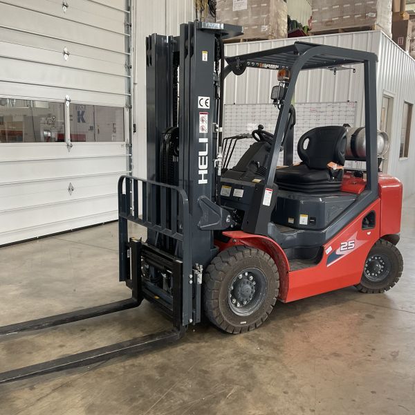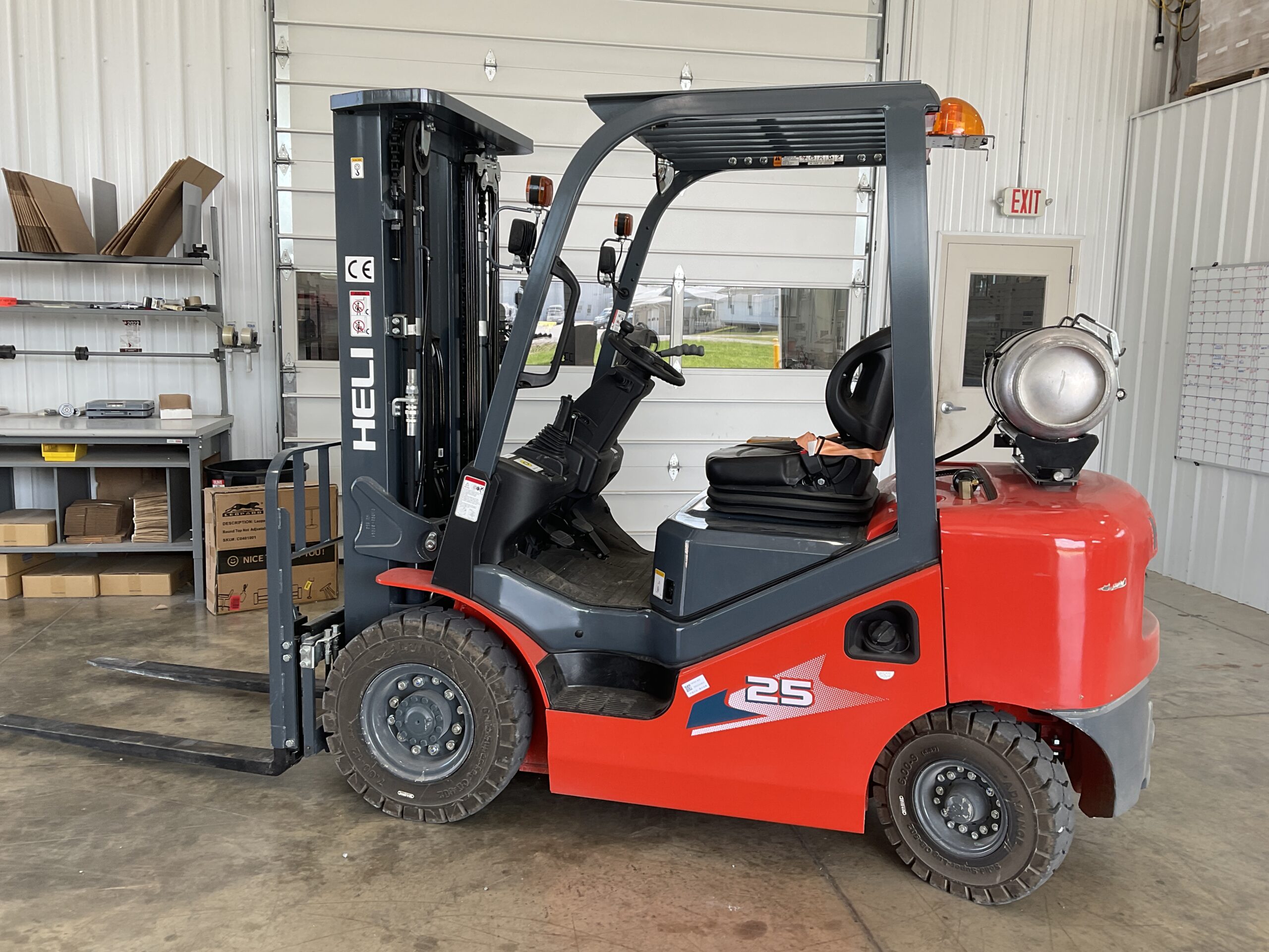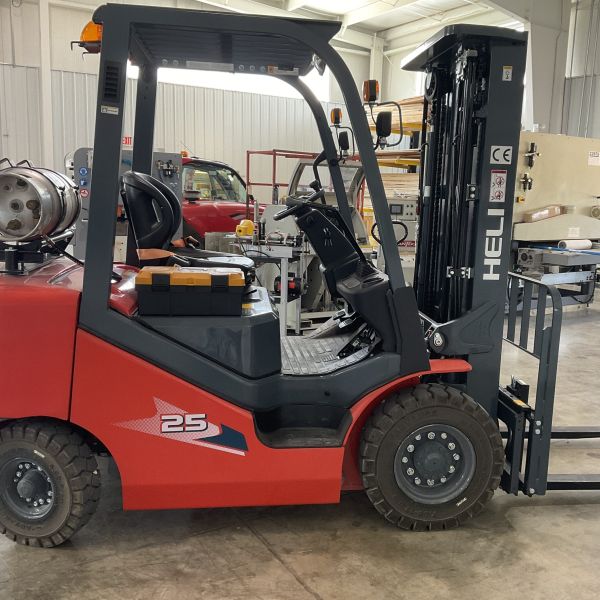 HELI FORKLIFT, Capacity: 5,000 lbs Capacity @24″ Load Center Mast:189″ Triple Mast Attachment: Heli Hang on Side Shifter Tires: Solid Tire Forks: 42″ Forks length Others:4 Valve, LED Rotating light, G Series Seat with Manual DOC Holder, Steering Wheel Knob, Grab Handle with Horn Button on the rear OHG Leg,NO LP tank, OPS. (LIKE NEW) {REDUCED PRICE}