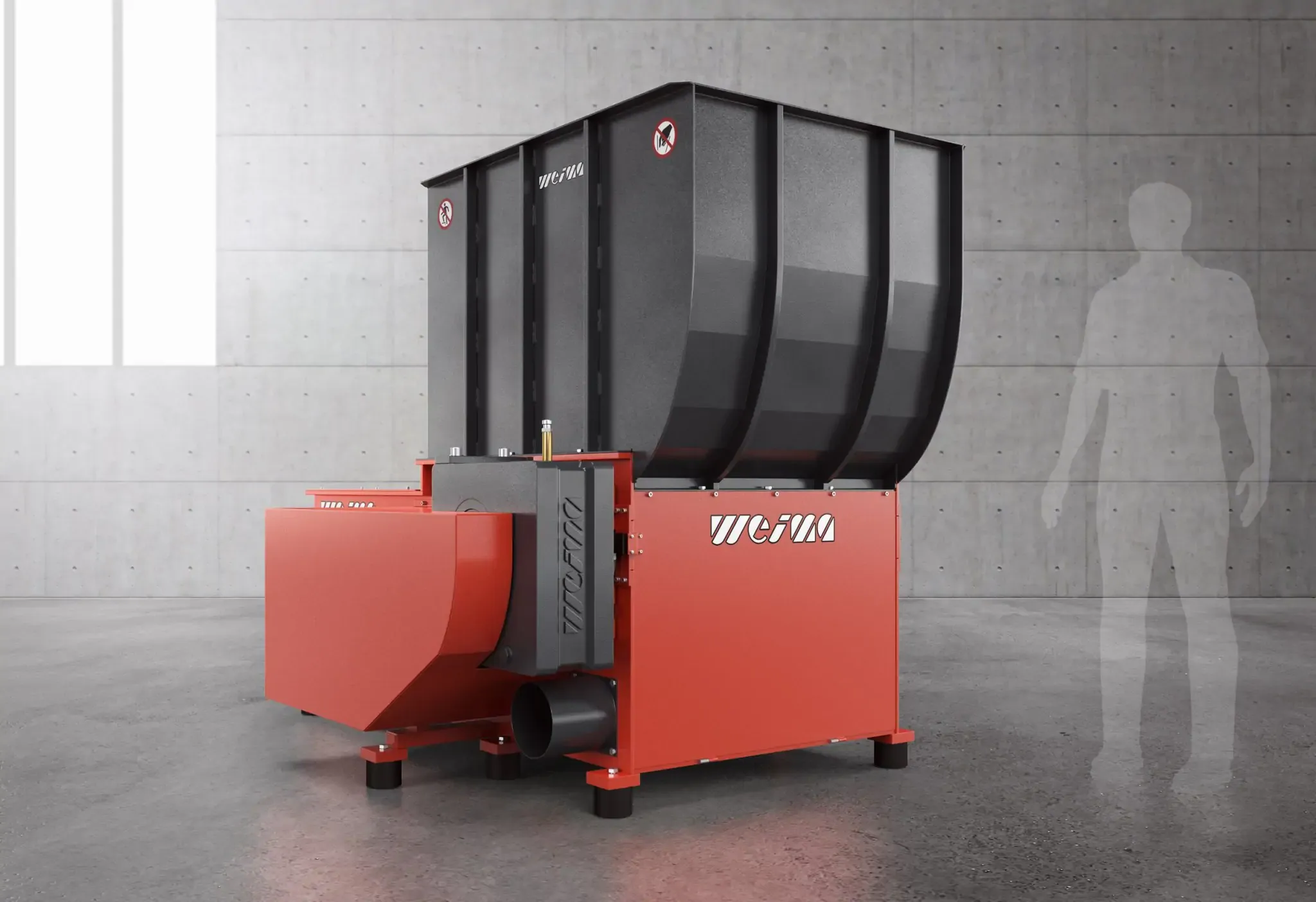 The WL 4, WL 6, WL 6 S, and WL 8 single-shaft shredders have proven themselves to be the classic shredders for wood waste of all kinds, and can be found in thousands of woodworking shops all over the world. The global popularity of this shredder series assures high reliability at a competitive price to performance ratio. These machines set themselves apart from other machines of their size and type due to their robust construction, giving them a longer life cycle. The shredded wood can be discharged into an air conveyor or onto a traditional conveyor. The profiled innovative “V” Rotor is made of solid material and mounted on stable rotor bearings. Special blade holders are welded into milled blade pockets around its circumference. The cutting knives are set into these and screwed on from the back. This ensures quick and easy blade changing.