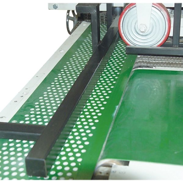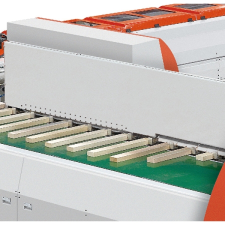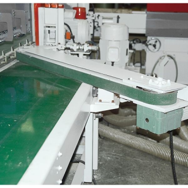 The F-C61 also has a wood side changing device that moves the wood piece to the opposite side using a belt-driven pusher and a powerful suction table to prevent the wood piece from turning over