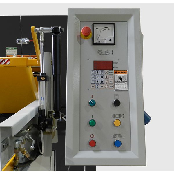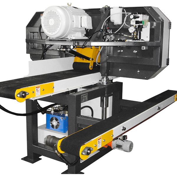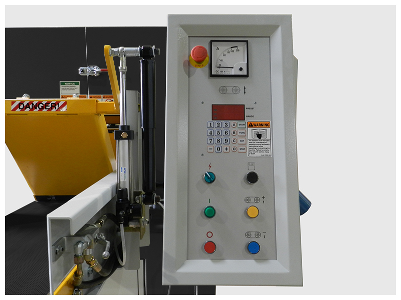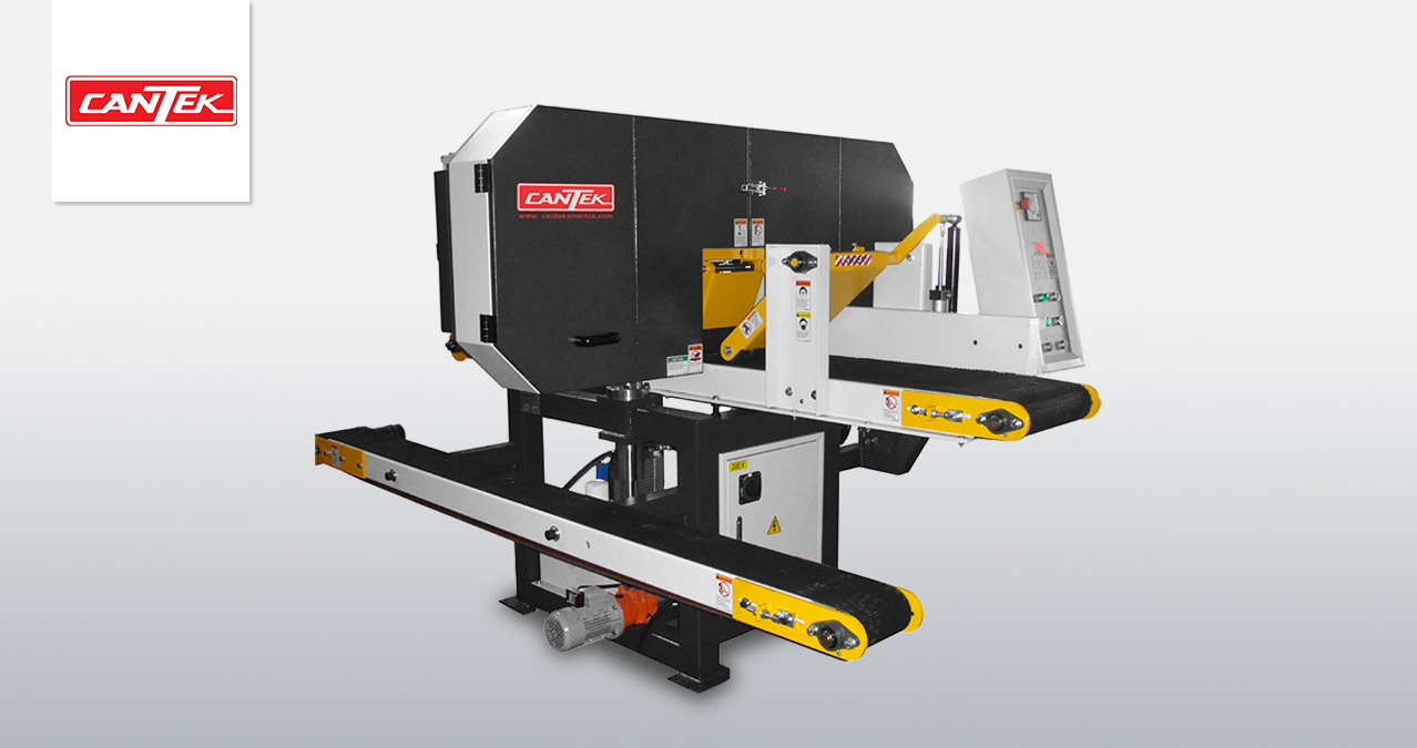 The Cantek HR400PB Horizontal Band Resaw is a heavy-duty resaw with a robust machine design capable of resawing large timbers with precise results. With its powerful 30HP variable speed saw motor and variable speed hydraulic feed system the HR400PB can be optimized for any job. Equipped with a large cutting capacity up to 15 ¾” wide and up to 9.8” thick. The saw assembly is raised and lowered electronically using a digital input controller for precise thickness setting. All controls are conveniently located next to the infeed conveyor for operator convenience.