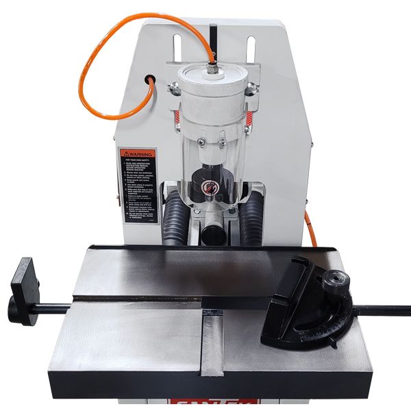 Whether you are drilling horizontal holes for door or furniture components the Cantek BM301 Horizontal Boring Machine is a great choice. With its two spindle drilling head with adjustable drill centers from 0.71”~3.93” centers (18~100mm), you can conveniently drill dowel hoes with ease. The drilling assembly and table are made from cast iron for maximum rigidity and durability. The unit is mounted to a fabricated steel base for optimal functionality. The drilling cycle is controlled by a pneumatic cylinder and is actuated by a foot pedal for operator convenience. The drilling speed is adjustable for optimal cycle speeds. The drilling head is driven by a powerful 2HP direct drive motor. A pneumatic clamp ensures the work piece is held firmly during drilling operations.