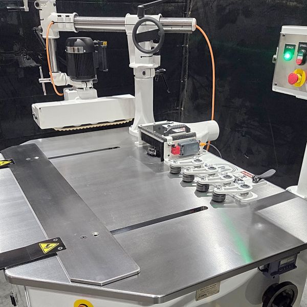 On every one of our wood shapers, you have the option of a manually adjustable or digitally adjustable cutter head Z-axis.