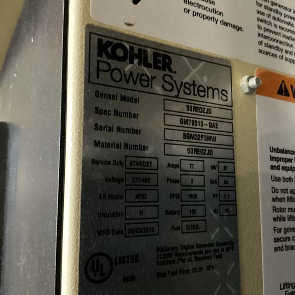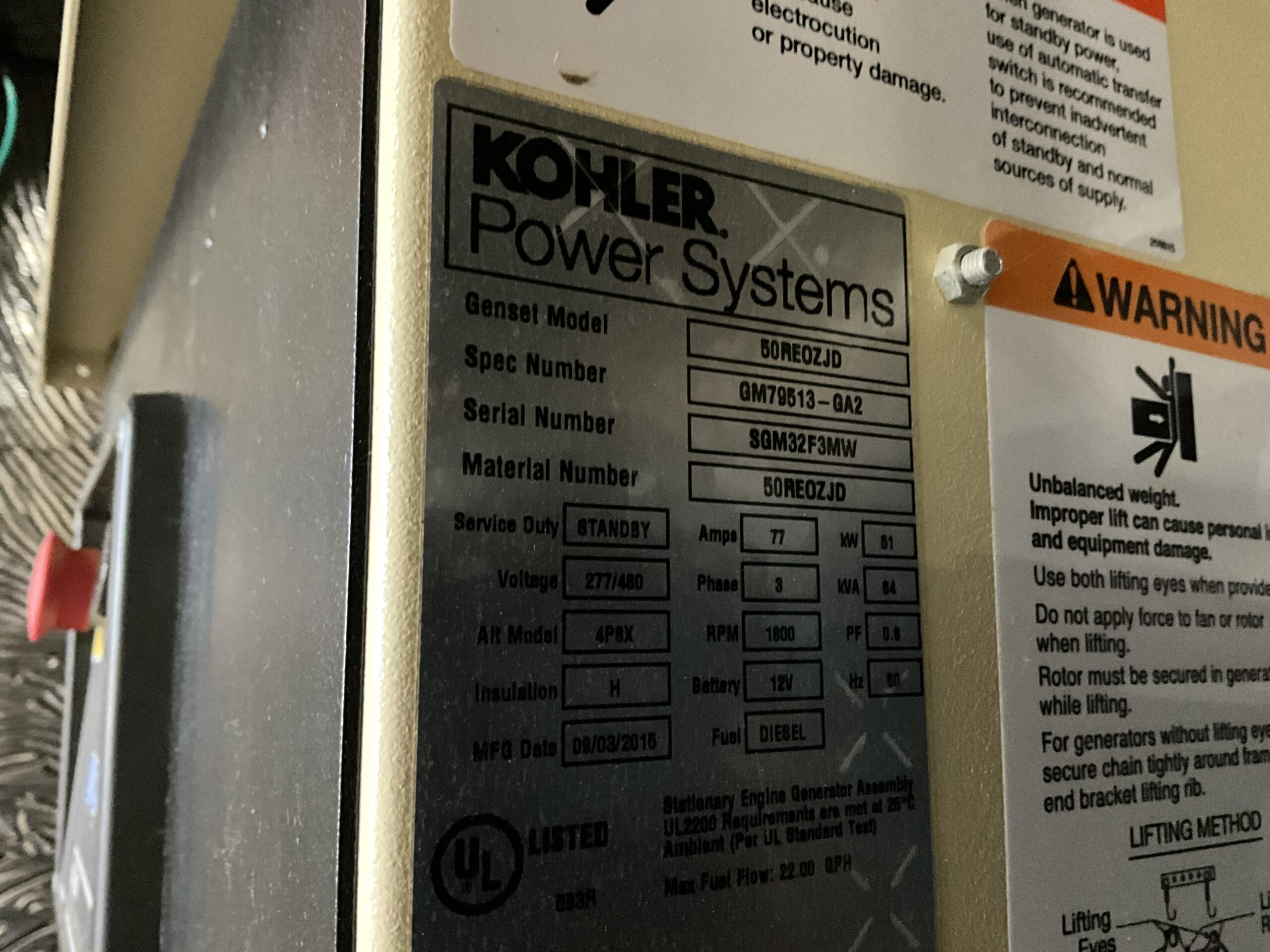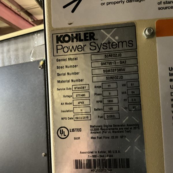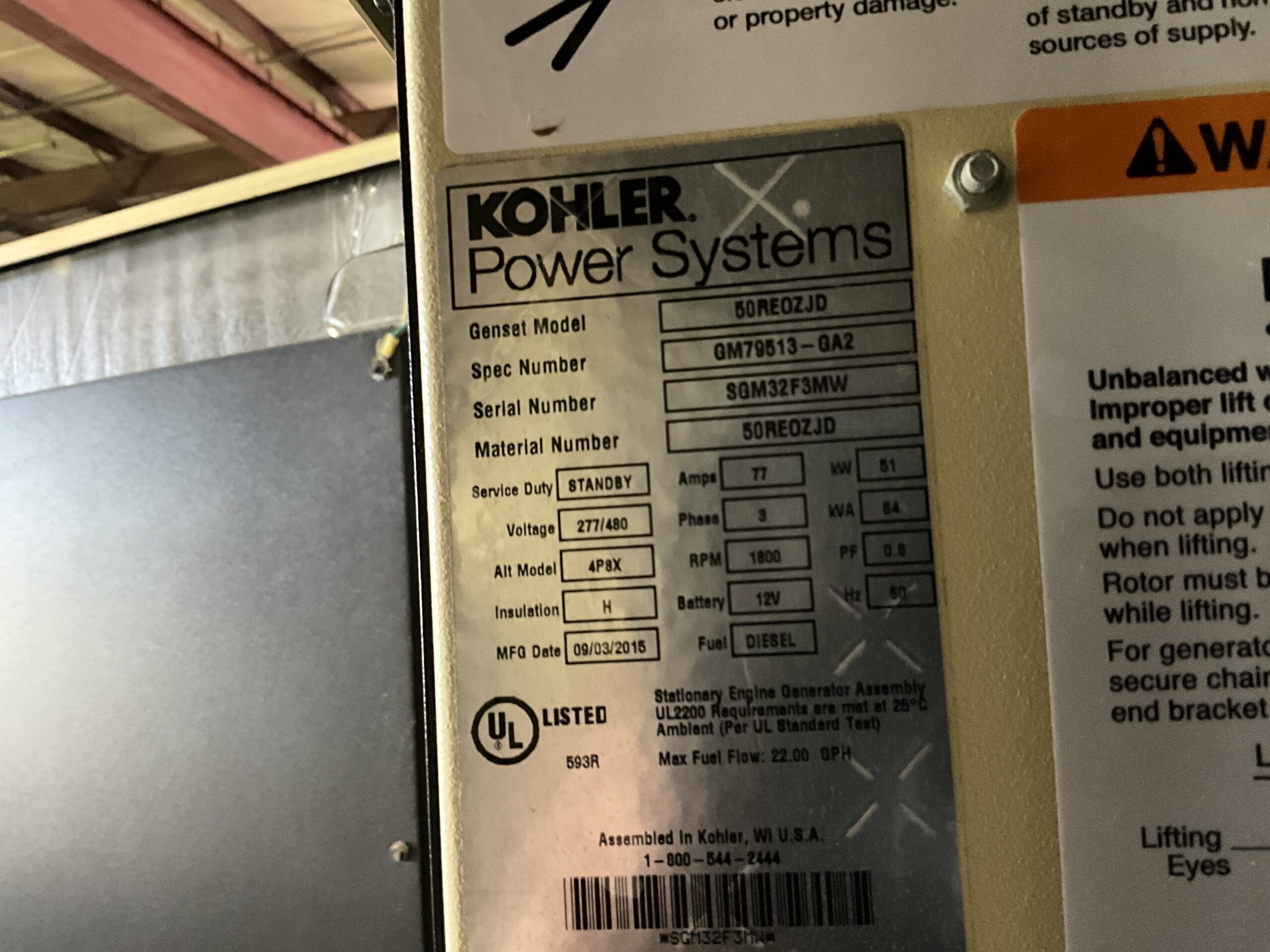 KOHLER GENSET 51KW RUNS (278 HOURS)