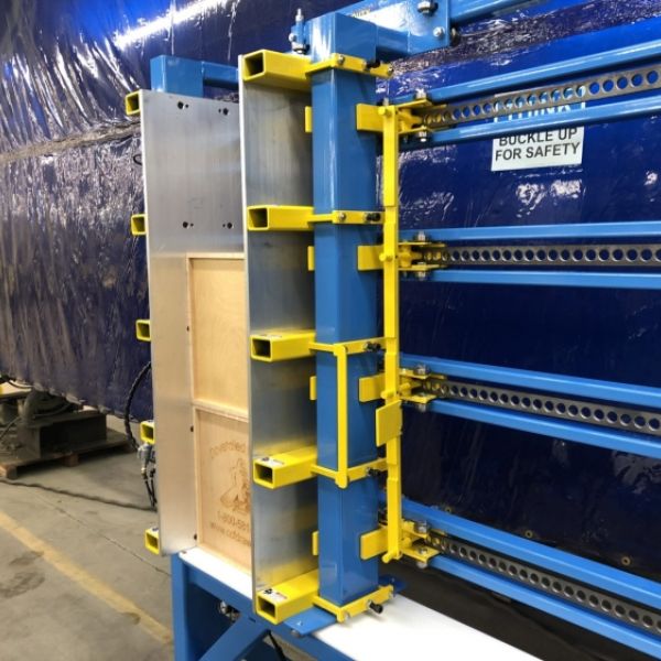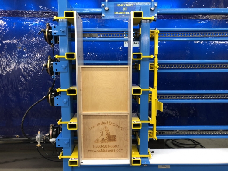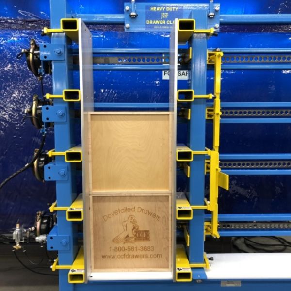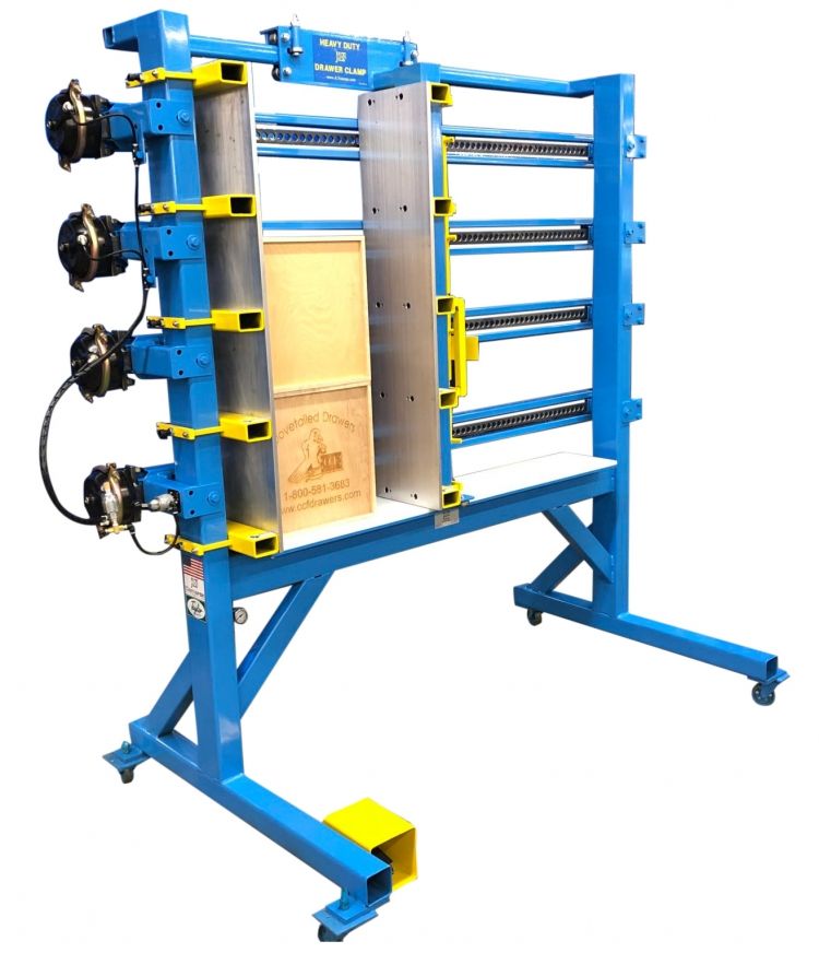 The JLT Heavy Upper Box and Case Clamp is Designed to Clamp and Square all Doweled and Dovetail Box Construction Types. Our Design is Heavy Duty, Sturdy, Intuitive to Use, and Built to Last. It has Precise Squaring Capabilities with ample Clamping Pressure for your Boxes. A Quick Adjusting Roller Carriage Eliminated Setup Times when moving from Size to Size, and our Fast Acting Pneumatic System will Clamp and Square the Box in (2) Seconds. •Large Capacity 12″ x 48″ x 48″