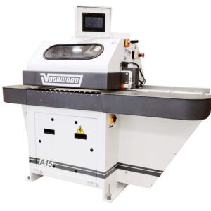 The A15 Miter Lock Machine shapes the edge of solid wood and plywood parts in one go to produce a precision lock miter joint, thus eliminating the doweling process. The machine has two shaping stations, one in the vertical position and the other in the horizontal position, to accomplish both profiles of the miter lock joint. Both spindles are equipped with vertical, horizontal, and tilt adjustments. Each adjusting axis uses a mechanical digital readout to display its position. The shaping stations are equipped with a precision-balanced drive motor and spindle. Further, this configuration allows the operator to create lock miter joints of 87° up to 160°.