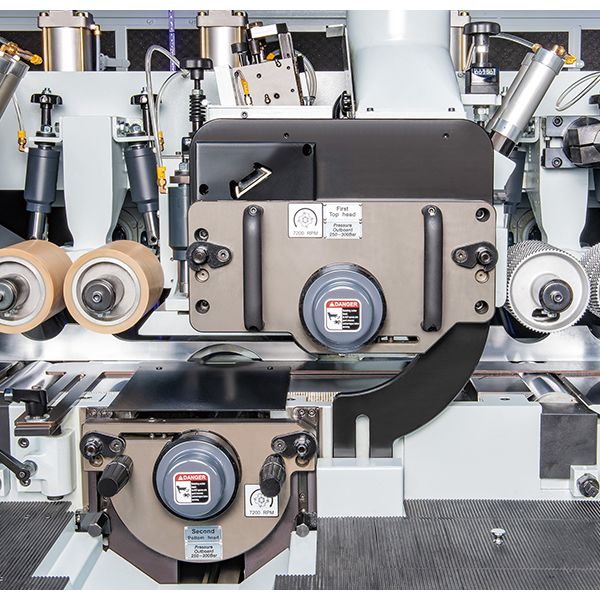 Heavy-duty jointed moulder for high speed production of finished mouldings and planed lumber. The Leadermac Speedmac Moulder Series has been designed very heavily to run at high speeds, with a range of options to meet your particular needs. The Speedmac moulder is available with profile and straight jointers and feed speeds up to 400 fpm to produce an excellent finish. The feed system is designed to handle rough or pre-sized material, and built to run in demanding multiple shift operations for maximum uptime.
