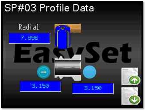Easyset Setworks Includes a Schneider 5.7” HMI Touch Screen Control, and motorized adjustment of the near side(s) and top heads and top feed beam. Complete with memory for 200 profiles