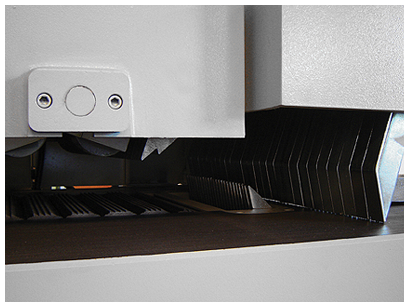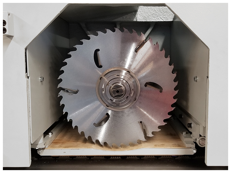 The Cantek MRS300 Multi Blade Gang Ripsaw is a true production multi ripsaw with an industrial cast iron machine body. The precision cast iron chain and track system allows for maximum durability and precision resulting in superior cut quality and accuracy. The removable saw sleeve system allows for fast changeovers between ripping operations leading to increase throughput. The MRS300 is also equipped with a powerful 50HP standard saw motor for maximum cutting depth with multiple rip blades and increase feed speeds. A minimum ripping length of 11.8” can be achieved with the optional short stock attachment.